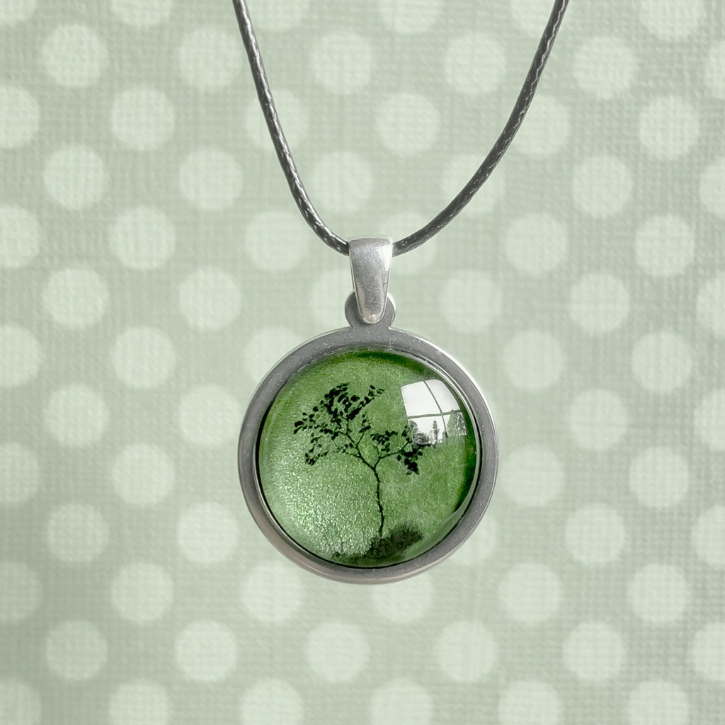 We have carefully sealed the front and back of the image to ensure that it is water resistant. It will be OK if you get caught in the rain, but please avoid submerging it when swimming or bathing. Regular cleaning with a silver cloth will keep the pinch bail nice and shiny.