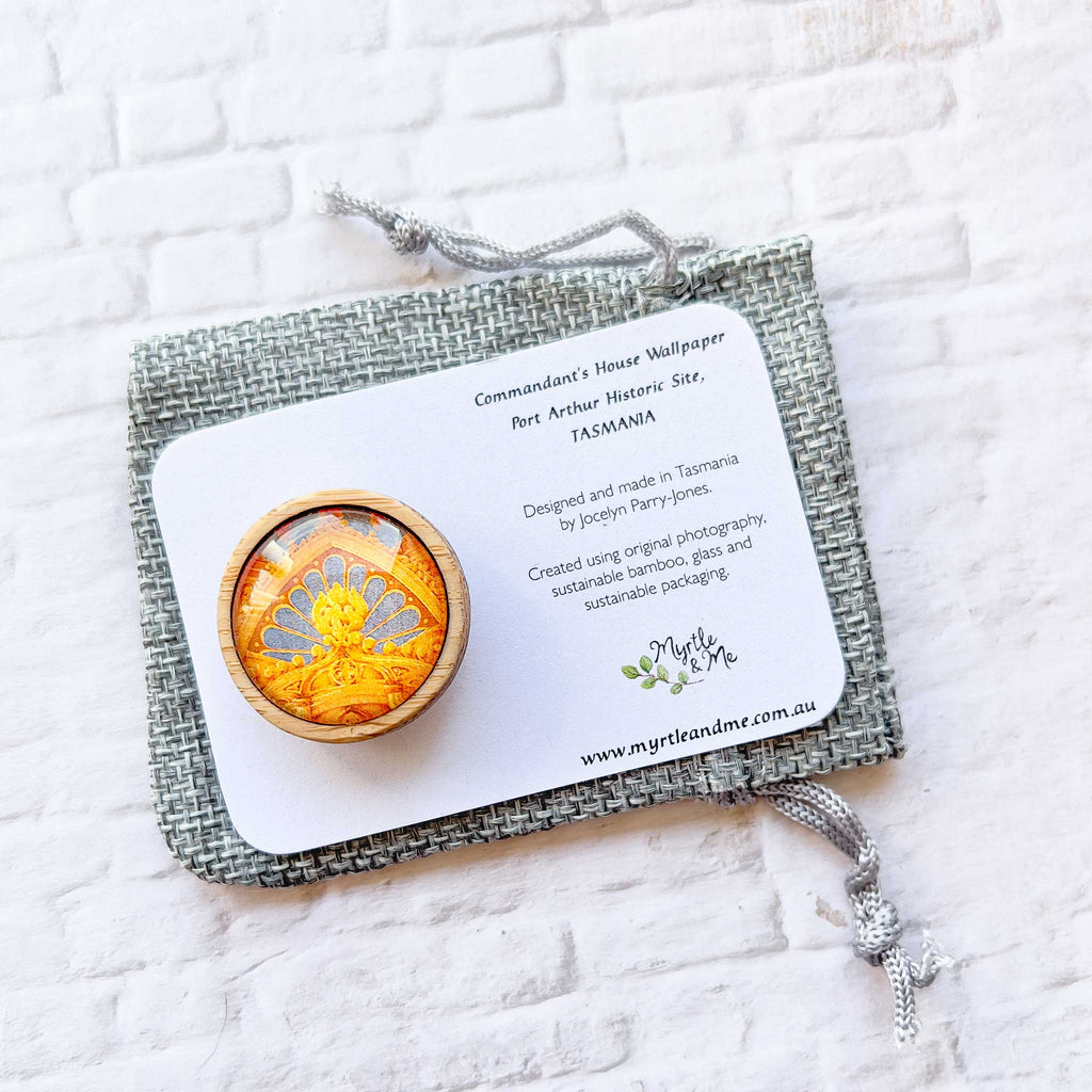 • This unique brooch design was created from our photograph the wallpaper in the Commandant's House, at the Port Arthur Historic Site (Tasmania, Australia)